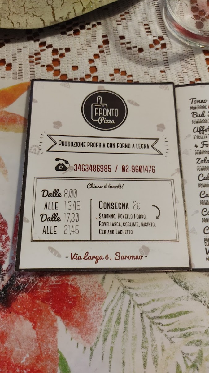 Welcome to Pronto Pizza, a delightful pizzeria located in Saronno, Italy. This eatery stands out for its exceptional quality and variety, offering an array of pizzas and more. Renowned for speedy service, Pronto Pizza caters to both dine-in and delivery options, making it a convenient choice for all pizza lovers.